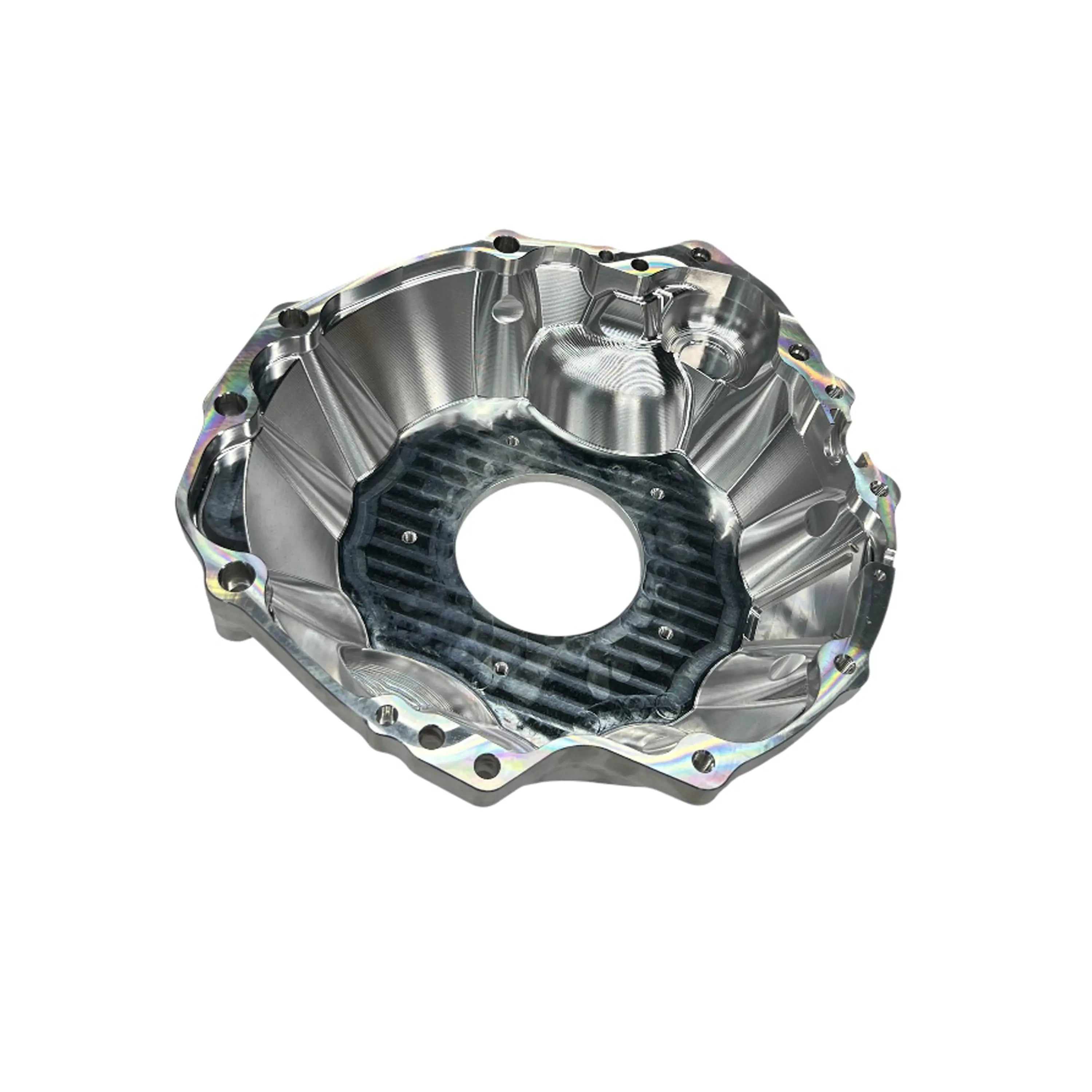 CNC machined from a solid block of high-strength material, our GTR billet bell housing provides unparalleled structural rigidity. This eliminates the flex that the factory component can't withstand, ensuring perfect alignment of your clutch and transmission input shaft even under the most brutal conditions.