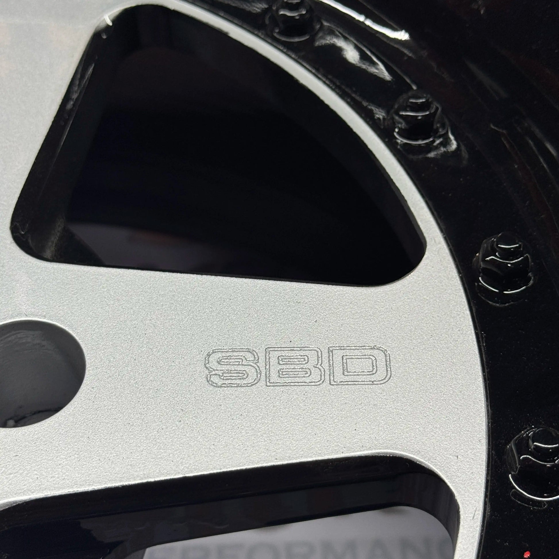 Used set of SBD aftermarket rims for the Nissan GT-R R35. These performance-oriented wheels offer a non-OEM option for enthusiasts seeking a unique style. Known for their lightweight design and durability, they are a popular choice for street or track use.